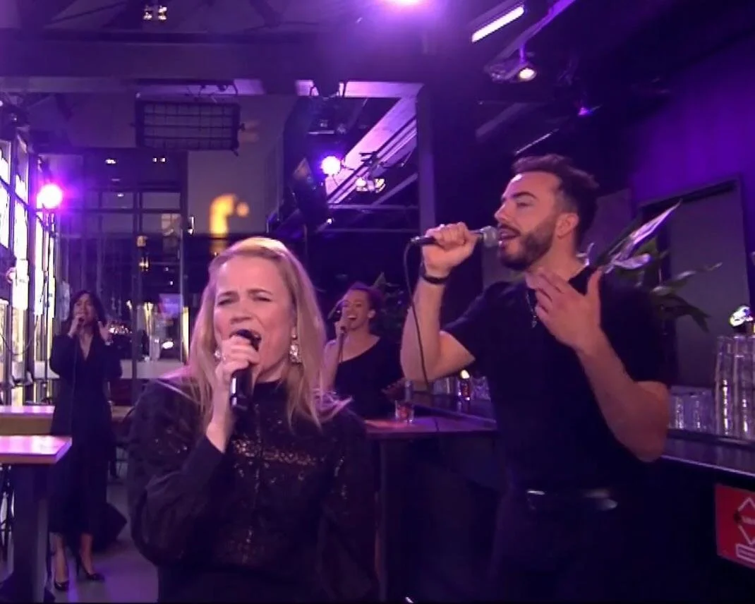 Volledige grootte weergeven ‘Nooit Van Mij’ first time live πŸ€©πŸ’œ #clubdauphine #live #performance #nederlands #fridaynightlive #eigenwerk